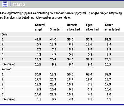 Kontrolgruppen blev stillet tilsvarende spørgsmål blot vedrørende deres vaginale fødsel.