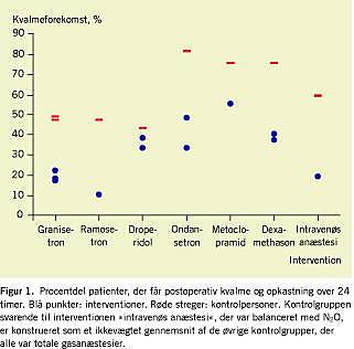 I de procedurespecifikke studier for brystkræftkirurgi med forskellige behandlingsregimener er incidensen af PONV i placebogrupperne 50-80%, og ved en profylaktisk indsats med antiemetika som monoterapi kan den reduceres til 10-55% inden for de første 24 timer (Figur 1 ).