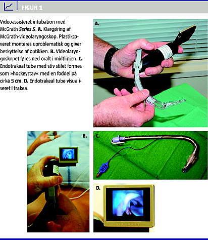 Summary Optical and video-assisted laryngoscopy for problematic airways Ugeskr Læger 2009;171(48):3528-3530 Airway management is one of the greatest anaesthesiologic challenges. Direct laryngoscopy using a standard McIntosh laryngoscope has been the predominant intubation choice for many years. Videolaryngoscopy is becoming a widely accepted airway management technique owing to its potential advantages over direct laryngoscopy including a better view of the larynx, reduced tracheal intubation time and educational value. We present an overview of the currently most used optical and video-assisted laryngoscopes with a special focus on the McGrath Series 5 videolaryngoscope.