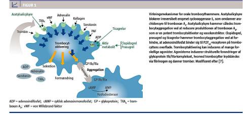 Acetylsalicylsyre (ASA) har i årtier været et centralt element i behandling og sekundær forebyggelse af kardiovaskulær sygdom. Siden årtusindeskiftet har adenosindifosfat (ADP)-receptor-antagonisten clopidogrel i mange kliniske situationer været anvendt i tillæg til ASA, da risikoen for kardiovaskulære events herved reduceres yderligere. Clopidogrel var således det næstmest solgte receptpligtige lægemiddel i verden i 2010 (kun overgået af atorvastatin) [1]. Aktuelt er tre forskellige ADP-receptor-antagonister klinisk tilgængelige i Danmark: clopidogrel, prasugrel og ticagrelor. Clopidogrel og prasugrel tilhører thienopyridingruppen og er prodrugs, som aktiveres via cytochrom P-450 (CYP)-systemet i leveren, hvorimod ticagrelor virker direkte på ADP-receptoren uden behov for forudgående metabolisering (Tabel 1).