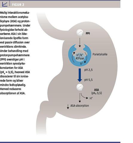 En interaktion mellem ASA og PPI skyldes muligvis, at PPI hæmmer den gastrointestinale absorption af ASA (Figur 2).