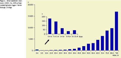 I Danmark døde 467 børn i alderen 0-15 år i 2001. Af disse døde 178 i første leveuge, og 321 i første leveår (Figur 1 ). Årsagerne var for tidlig fødsel og misdannelse og sjældnere komplikationer i forbindelse med fødslen eller infektion. Selv om denne mortalitet er ekstremt lav i et historisk og globalt perspektiv, er den ikke specielt lav i europæisk sammenhæng.