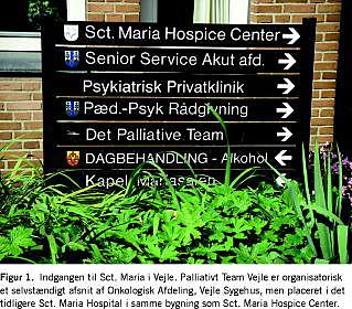 De fleste patienter ønsker at opholde sig mest muligt i deres eget hjem, og også at dø der. For at imødekomme dette behov også for patienter med de mest komplicerede problemstillinger er udadgående specialiserede palliative team en forudsætning. Deres kliniske funktion omfatter hjemmebesøg, tilsyn på sygehusafdelinger, ambulante konsultationer, telefonkonsultationer og ofte også den lægelige betjening af et tilhørende hospice. Disse specialistteam er hospitalsbaserede, men fungerer i et konstant samarbejde med såvel primærsektor, hospice og hospitalssektor (Figur 1 ).