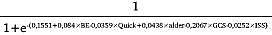 Hvor BE er base excess (mmol/l), Quick er protrombintid (%), GCS er Glasgow coma scale score , og ISS er injury severity score .