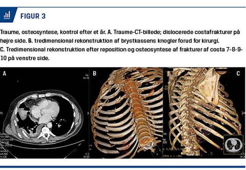 Mange patienter, som har mindre traumer og costafrakturer og umiddelbart behandles med peroral analgetika, hjemsendes i dag fra skadestuer og fælles akutmodtagelser hurtigt efter behandling eller efter en kort indlæggelse. Nogle af disse patienter vil opleve vedvarende smerter, som kræver videreudredning, og ved fund af PS tilbydes stabilisering i form af OS med titaniumskinner (Figur 1).