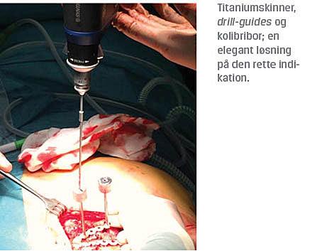 forskellige ribbenstykkelser; dybden kan opmåles på forhånd på en CT eller peroperativt med en miniskydelære. Skinnerne fikseres med skruer, som i de hyppigst anvendte produkter har bikortikalt fæste og låses i selve skinnen [22-24].