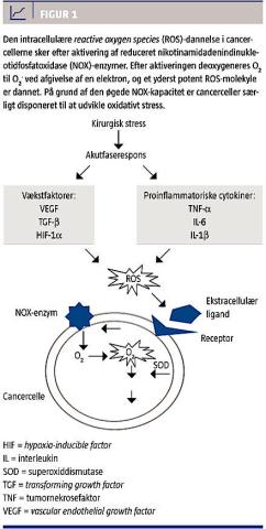 Kirurgi stimulerer ROS-dannelsen, idet der allerede kort tid efter den initiale incision iværksættes et inflammatorisk og immunologisk respons med frigivelse af både monocytter, leukocytter og makrofager. Disse frigiver alle cytokiner og interleukiner, som blandt andet via tumornekrosefaktor-alfa stimulerer NOX-enzymer på cancercellerne til dannelse af frie radikaler [10, 16, 19].
