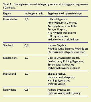 Aktuel organisering af pædiatri i Danmark (Tabel 1)