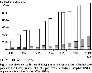 Nu ca. 37 år efter den første transplantation er pancreastransplantation sammen med lungetransplantation de transplantationsformer, som er i størst udvikling mht. antallet af udførte transplantationer. Der udføres nu ca. 2.000 transplantationer årligt. Kandidater til en pancreastransplantation er patienter med diabetes type-1, som også skal have eller allerede har fået foretaget en nyretransplantation. I sjældne tilfælde foretages der isolerede pancreastransplantationer på patienter med særligt vanskelig regulerbar diabetes. Resultaterne af pancreastransplantationer er forbedret meget betydeligt i de seneste 5-10 år. Årsagen er specielt ny og mere effektiv immunosuppression som mycophenolat mofetil (Cell-Cept) og Prograf. Endvidere er rejektionsdiagnostikken forbedret med indførelse af finnålsundersøgelser af pancreasgraften som rutine. Graftoveroverlevelsen efter et år er nu bedre end 90% både ved simultan nyre-pancreastransplantation og ved transplantation af pancreas efter en nyretransplantation. Resultaterne ved isoleret pancreastransplantation er generelt dårligere, men også disse resultater er blevet forbedret betydeligt i de seneste år, og i de bedste centre er der nu ikke længere signifikant forskel på resultaterne af kombinerede og isolerede pancreastransplantationer. Randomiserede undersøgelser af effekten af pancreastransplantation foreligger ikke, men der er adskillige undersøgelser, som klart tyder på, at diabetikere, som får foretaget nyretransplantation lever længere og har bedre livskvalitet, såfremt de også har et velfungerende pancreastransplantat. Det er endvidere også overbevisende vist, at en pancreasgraft yder beskyttelse mod udvikling af nye diabetiske komplikationer, ligesom der er vist en vis effekt på allerede opståede komplikationer. På denne baggrund advokeres der for, at patienter med type 1-diabetes vurderes med henblik på en pancreastransplantation i forbindelse med eller efter en nyretransplantation.