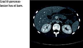 I to studier illustreres den uenighed, der fortsat er om nonoperativ versus operativ behandling. Stringer [24] fandt således, at fem ud af fem børn med svær pancreaslæsion, der initialt var behandlet nonoperativt, efterfølgende havde behov for kirurgisk indgriben, mens Wales et al [34] fandt, at ni ud af ni patienter med svær pancreaslæsion blev behandlet nonoperativt med godt resultat.
