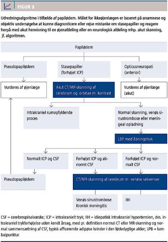 Hurtig udredning af papilødem er vigtig, dels for at udelukke/konstatere stasepapiller, der kan være forårsaget af en akut livstruende sygdom, dels for at initiere relevant behandling af årsagen til papilødemet, idet ubehandlet papilødem kan medføre synstab. I tilfælde af papilødem er det hensigtsmæssigt at følge en udredningsalgoritme (Figur 3).