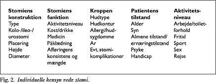 Stomibandagen skal passe til det enkelte menneske med hensyntagen til de i Fig. 2 anførte forhold.