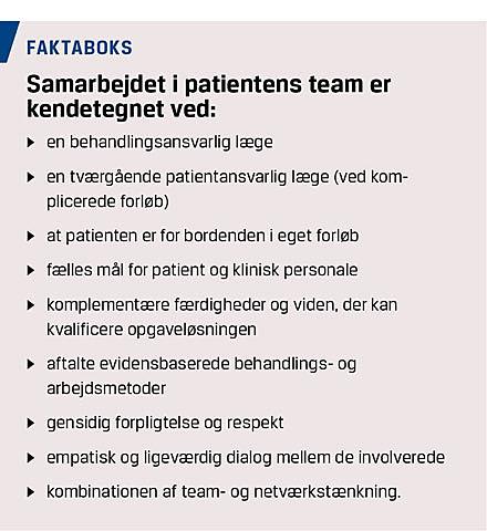 I denne artikel beskrives brug af patientens team som en grundlæggende metode til at sikre hensigtsmæssige patientforløb og skabe løbende justeringer og forbedringer.