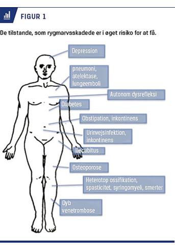 En rygmarvsskadet patient har påvirkning af alle organsystemer. Følgetilstandene efter en rygmarvsskade er alvorlige – i visse tilfælde livstruende. Selvom rygmarvsskadede patienter følges på de to rygmarvsskadecentre i Danmark, vil læger i stort set alle specialer blive inddraget i behandlingen pga. de mange følgetilstande. Komplikationerne medfører øget forbrug af sundhedsydelser hos alment praktiserende læger [1] og på sygehusafdelinger. Det er derfor vigtigt for alle læger at kende til følgetilstande til en rygmarvsskade, så patienten kan behandles bedst muligt [2].