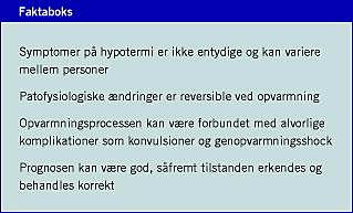 - Olsen DH, Gøthgen IH. Behandling af accidentel hypotermi. Ugeskr Læger 2000;169:4790-94.