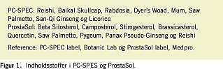 ProstaSol er ikke så grundigt beskrevet som PC-SPES. Imidlertid findes nogle af de indholdstoffer, som kan være virksomme over for prostatacancer i begge produkter. Dette inkluderer reishi, panax ginseng og saw palmetto [3]. Yderligere indeholder ProstaSol beta sitosterol, Baikal skullcap, quercetin og pygeum, alt sammen midler, som er relateret til et positivt respons i behandlingen af prostatacancer eller benign prostatahyperplasi [3, 4]. Dette er påvist ved dels in vitro-forsøg, dels kliniske forsøg [1, 2].