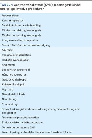Talrige mindre indgreb kan foretages under aktiv VKA-behandling [12]. Det er vigtigt, at man inden indgrebet kontrollerer, at INR ikke er over terapeutisk niveau (Figur 1, metode V).