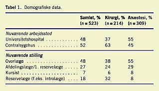 Materiale og metoder: Der blev udsendt et anonymiseret spørgeskema til samtlige læger ansat på kirurgiske og anæstesiologiske afdelinger i Danmark.