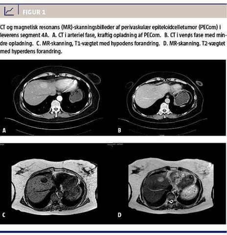 Primær PECom i leveren er sjældent beskrevet og – så vidt vi ved – ikke beskrevet i Danmark før. PECom blev defineret som selvstændig tumorfamilie af WHO i 2002 [4], og formentlig har mange tumorer, som er blevet klassificeret som angiomyolipomer, været