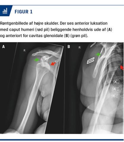 En røntgenundersøgelse af højre skulder viste højresidig FSL uden komplicerende fraktur (Figur 1).