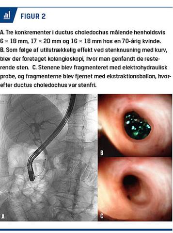 i én session hos 86%. I studiet fik to patienter efterfølgende akut kolangitis, og én fik postprocedurepankreatitis, hvilket svarer til en samlet komplikationsrate på 3% [22].