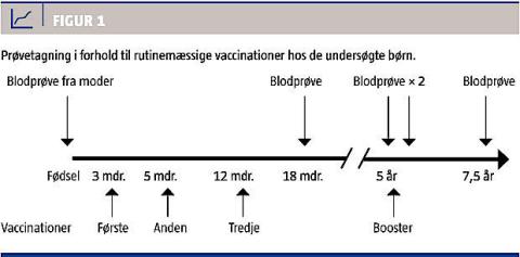 Børnevaccinationsprogrammet på Færøerne svarer til det danske, og alle børn får de samme vacciner fra Statens Serum Institut, dvs. tre grundvaccinationer i det første år samt en booster ved femårsalderen (Figur 1).
