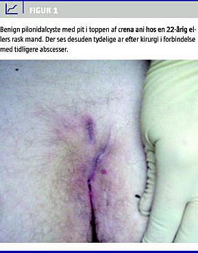 Pilonidalsygdom er hyppig og kan medføre recidiverende infektioner og nødvendiggøre gentagne operationer [2] (Figur 1 ). En yderst sjælden komplikation er malign transformation med udvikling af oftest planocellulært karcinom, men basalcellekarcinom og adenokarcinom, der er udviklet fra svedkirtler i huden, er også beskrevet [3].