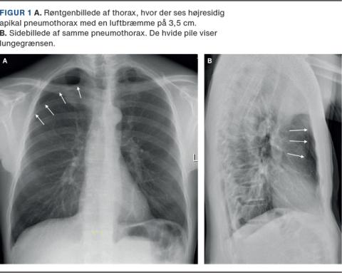 En lungerask patient med kroniske nakke-ryg-smerter søgte en alment praktiserende læge pga. en subjektiv fornemmelse af »tung vejrtrækning«. Han blev henvist til røntgenoptagelse af thorax, hvor man fandt højresidig pneumothorax (Figur 1).