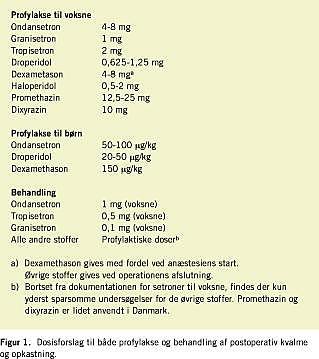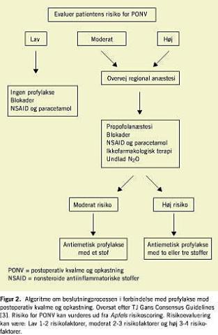 Postoperativ kvalme og opkastning (PONV) er en af de almindeligste bivirkninger i forbindelse med anæstesi og kirurgi. Den er altid forbigående, kan reduceres med profylakse/behandling og bliver aldrig til en kronisk tilstand. Alligevel er det en frygtet tilstand hos patienterne. I et amerikansk studie fandt man, at patienterne var villige til at betale 100 dollars for at undgå PONV. Omkring 1% af de ambulante patienter bliver indlagt pga. PONV. Litteraturen om PONV er mangfoldig. I løbet af de seneste ti år er der publiceret over 1.000 artikler om emnet. For nylig har Tramèr [1, 2] sammenstillet 30 systematiske review om PONV. Ydermere er der udkommet koncensusretningslinjer [3], og for første gang har man i en stor, kontrolleret undersøgelse klarlagt fordelene ved kombinationsbehandling af antiemetika [4].