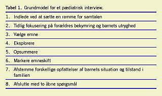 Det pædiatriske speciale og interview adskiller sig væsentligt fra andre specialer i selve patientkontakten, idet pædiateren og andre læger, som behandler børn, skal kunne etablere en positiv kontakt til hele familien, dvs. både barnet og forældrene [1, 2]. Kontakten skal tilpasses børn og unge i alderen 0-15 år [3, 4]. Disse specielle aspekter ved kontakten i det pædiatriske interview viser sig ofte i praksis at være vanskelige for den utrænede og kræver derfor særskilt træning.