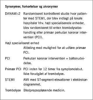 - Nielsen TT, Andersen HR. Primær perkutan koronar intervention af ST-elevationsmyokardieinfarkt, DANAMI 2-undersøgelsen. Ugeskr Læger 2003;165:1227.