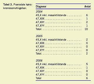 Taksigelser: Jan Hansen , Dansk Cytogenetisk Centralregister, takkes for hjælp med udtræk fra registret.