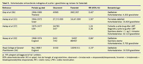 Vi fandt fire kohortestudier [31, 32, 34, 36], hvori man undersøgte risikoen for fosterdød, heraf påviste man i to en forøget risiko. Vi fandt to kohortestudier [32, 37], hvori man undersøgte risikoen for spontan abort, heraf påviste man i det ene en forøget risiko. I Vesseys og Grays studier [32, 36] blev der ikke fundet en forøget risiko, og disse studier var betydelig mindre end de andre studier. Kohortestudierne gav hermed ikke entydige resultater.