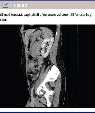 En 47-årig kvinde blev indlagt pga. konstante smerter i nedre abdomen igennem et døgn. Fraset tidligere galdestensanfald var hun sund og rask. Objektivt fandt man direkte og indirekte ømhed i venstre side af abdomen, men ingen palpable udfyldninger.