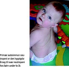 Primær autoimmun neutropeni (AIN) forårsages af autoantistoffer, der er rettet mod den neutrofile granulocyt, og er den hyppigste årsag til svær neutropeni hos børn < 2 år. Sygdommens årlige incidens er i litteraturen beskrevet som 1/100.000 i aldersgruppen < 10 år [1], men AIN vurderes at være betydelig underdiagnosticeret pga. sygdommens meget variable kliniske forløb [2].
