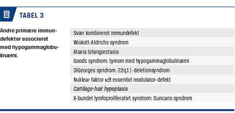 hypogammaglobulinæmi. Antistofniveauet normaliseres hos de fleste børn i treårsalderen. Der kan i sjældne tilfælde være behov for midlertidig behandling med