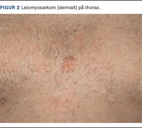 Kutant leiomyosarkom (LMS) er en tumor, som opstår i hudens glatte muskulatur i enten dermis eller subkutis. Tumorerne er sjældne og udgør 2-3% af alle kutane sarkomer [5]. Den højeste incidens er i 50-70-årsalderen [12, 13]. Kutant LMS inddeles i dermalt LMS og subkutant LMS, som adskiller sig mht. deres aggressivitet og prognose [14]. Dermalt opstår leiomyosarkomet i arrector pili-muskulaturen, og subkutant opstår det i den glatte muskulatur i karvægge.