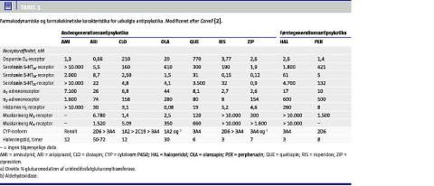 Ved skift mellem AP vil en forværring i patientens tilstand ud fra ovenstående bedst kunne forklares ved forskel i præparaternes receptorprofiler, hvor man især skal være opmærksom ved skift mellem præparater med stor forskel i D 2 - og muskarinerg receptoraffinitet.