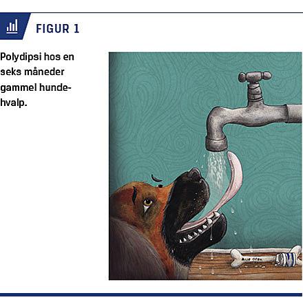 Viggo, en seks måneder gammel hundehvalp af racen leonberger (Figur 1), fik i juni 2015 pludseligt indsættende, svær polydipsi. Forudgående havde han accidentielt indtaget ca. 50 tabletter propanthelinbromid a 15 mg (Figur 2), som var blevet ordineret til hans ejer med henblik på behandling af primær, lokaliseret hyperhidrose. Tørsten persisterede i tre dage, hvor Viggo tømte sin firelitersvandskål adskillige gange dagligt. Der var ingen ledsagende slingren i forbindelse med luftning, hvorunder nødtørften også blev forrettet som vanligt. Tilstanden normaliseredes uden veterinær indblanding, og efterfølgende var Viggo atter i velbefindende og havde normalt væskeindtag.