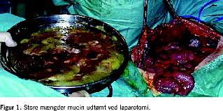 Summary Lene Hjerrild Iversen, Peter Christian Rasmussen, Pål Wara, N. Simon Ambrose & Søren Laurberg: Pseudomyxoma peritonei Ugeskr Læger 2004;166:2979-2981 Pseudomyxoma peritonei is a rare and fatal neoplasm with intraabdominal gelatinous fluid accumulation due to the proliferation of mucus-secreting cells on the peritoneal surfaces. Previously, these patients were palliated by incomplete surgical debulking. Cytoreductive surgery with curative intent, including total peritonectomy, and adjuvant locoregional chemotherapy is an aggressive treatment modality being introduced in the mid-1980s. Using this treatment option, five-year survival rate of 86% has been reported.