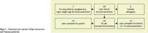 Konklusion: Undersøgelsens resultater tyder på, at det er nødvendigt at tilbyde mere fasespecifik familieintervention for at kunne inkludere flere patienter og deres familier. På grund af den lave incidens af førstegangspsykoser må flere behandlingsenheder samarbejde, for at man kan få tilstrækkeligt patientgrundlag til at opnå homogene grupper og sikre personalets uddannelse og fortløbende supervision.