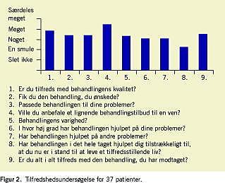 Tilfredshedsundersøgelser er vanskelige at evaluere, men patienternes svar giver et fingerpeg om deres oplevelse af, at have været i terapi, hvilket er vigtigt for at vurdere alliancen. Vore resultater tyder på, at det er lykkedes at opbygge en alliance, hvilket var yderligere et formål med terapien set i relation til den efterfølgende behandling.