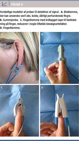 Afhængigt af den kliniske situation og det anvendte apparatur, placeres klemmen typisk på fingre, tæer eller øreflip (Figur 3).