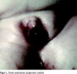 RMS er en sjælden sygdom, men da tidlig diagnose og behandling er afgørende for prognosen, er det vigtigt at kende tilstanden. Ved symptomer på urinretention, urinvejsinfektion, hæmaturi, inkontinens eller atypiske abdominalsmerter bør der primært foretages ultralydskanning af nyrer og urinveje. Hvis man ved denne, som i det omtalte tilfælde, ikke påviser abnorme fund, må cystoskopi og/eller MR-skanning overvejes, specielt ved atypiske urologiske symptomer. I dette tilfælde prominerede tumor ud af urethra, hvorfor diagnosticeringen undtagelsesvist blev enkel.