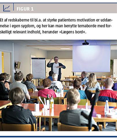 Sclerosehospitalerne har for længe siden gjort op med one size fits all. I dag yder Sclerosehospitalerne individualiseret rehabilitering til patienter med MS [24]. Vi opfatter det selv som personlig rehabilitering, hvilket er en proces, hvor man fra begyndelsen tager udgangspunkt i den enkelte patients behov og ønsker. Den specialiserede rehabilitering involverer den hele patient, og man arbejder ud fra den betragtning, at det enkelte menneske er unikt med sine sociale omstændigheder og livsstil. Fokus er at forbedre personens funktionelle status for at gøre størst mulig uafhængighed, aktivitet og deltagelse muligt. Der arbejdes desuden med at styrke patientens motivation og evne til at mestre sygdommen og dens udfordringer, nuværende som kommende. Et af redskaberne er uddannelse i egen sygdom, f.eks. ved såkaldte temaborde med forskelligt relevant indhold, herunder »Lægens bord« (Figur 1). Her undervises patienterne af Sclerosehospitalets neurolog, og der er rig mulighed for ud fra egne ønsker og behov at stille spørgsmål. Målet for patienten er positiv forandring i livet, samtidig med at der sættes specifikke og realistiske mål for selve rehabiliteringsforløbet. Patientens egen indsats er afgørende, når det drejer sig om at igangsætte de processer, som kan give bedre sundhed [25]. Som en naturlig konsekvens af dette vil vi på Sclerosehospitalerne være de første, der i et stort RCT undersøger ændringer i mestringsevne og sundhedsadfærd hos patienter med MS. Flere gange både før og efter indlæggelsen skal studiedeltagerne svare på et spørgeskema [26], der afdækker deres mestringsevne og sundhedsadfærd. Der har aldrig tidligere været udført et lignende studie i samme skala, hverken i Danmark eller internationalt, så resultaterne fra studiet bliver enestående i denne sammenhæng, og studiets resultater vil på flere områder belyse de aspekter, som efterspørges i Cochraneoversigtsartiklen.
