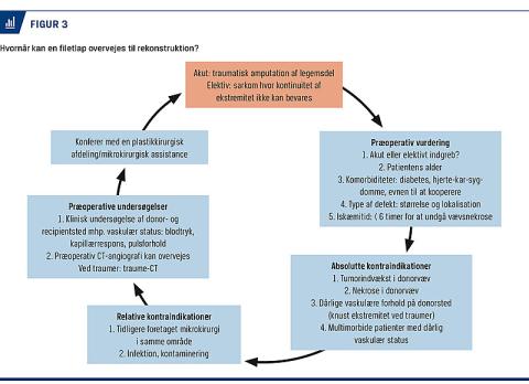 Hvis det drejer sig om større traumer/multitraumer, hvor der skal foretages amputation af en ellers rask ekstremitet, er det relevant, akut og med billeder, at konferere med et universitetshospital, hvor der er plastikkirurger og/eller kirurger med mikrokirurgiske kompetencer til stede, mhp. vurdering og indikationen for en FLP (Figur 3). Operation skal foretages ≤ 6 timer.