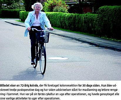 Der har været tradition for lange rekonvalescensanbefalinger efter større abdominalkirurgi. Da de første forsøg med accelererede forløb efter kolonresektion blev introduceret for cirka 12 år siden på Hvidovre Hospital, blev det hurtigt klart, at de traditionelle anbefalinger for rekonvalescens og sygemelding var unødigt lange og ikke relevante set i forhold til, hvor hurtigt operationspatienten restituerede sig efter de nye pleje- og behandlingsprincipper [1-4].