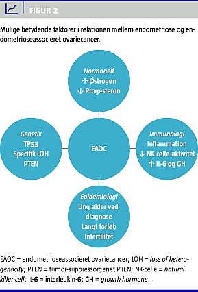 Forekomsten af interleukin-6 (IL-6) og growth hormone (GH) er vist at være øget i endometriosevæv og endometrioide adenokarcinomer i forhold til normalt uterint epitel. Dette tyder på, at endometriose kan ses som mulig præneoplastisk læsion, og at IL-6- og GH-koncentrationen siger noget om progressionen og muligvis er medvirkende til karcinogenesen [19] (se Figur 2 ).