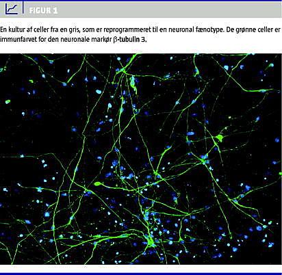 Neurovidenskaben har altid været hæmmet af manglende muligheder for at studere patofysiologien i levende neuroner fra patienter. Dette problem kunne imidlertid være tæt på en løsning. Ny forskning har nemlig vist, at modne humane celler, f.eks. fibroblaster, kan reprogrammeres til et embryonalt pluripotent stamcellestadium og efterfølgende differentieres til neuroner, der er genetisk identiske med donorcellen. Gennembruddet opstod med identifikationen af fire gener, som er aktive alene i embryonale stamceller [1]. Ved overførsel af disse gener til modne celler i kultur tilegner cellerne sig egenskaber som embryonale stamceller. Teknikken beskrives som reprogrammering af somatiske celler, og de resulterende stamceller kaldes inducerede pluripotente stamceller (iPS-celler). Ved efterfølgende differentiering ved brug af standardiserede protokoller kan man i princippet producere hvilken som helst specialiseret celletype, herunder neuroner, som det ses i Figur 1 [2].