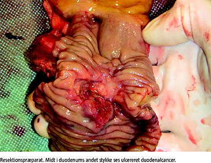 Cancer i duodenum (DC) er en sjælden sygdom[1], og der foreligger kun få data vedrørende resultaterne efter kurativ og palliativ behandling. En af hovedårsagerne til de manglende data skyldes vanskeligheden ved at opnå rene DC-materialer. Således skelner man i hovedparten af de foreliggende studier ikke mellem cancer, der er udgået fra caput pancreatis, papilla Vateri, distale galdeveje og duodenum [2, 3], og ofte registreres DC som tyndtarmstumorer. Baggrunden for dette skal formentlig søges i de præoperative billedmodaliteters, den intraoperative vurderings samt den patologiske undersøgelses manglende mulighed for med sikkerhed at fastslå, hvorfra tumor er udgået, med mindre tumor er beliggende i venstre side af pars horisontalis eller i pars ascendens af duodenum.